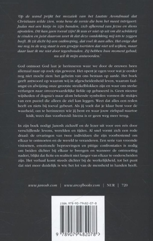 Ondertussen merkt Janosh dat de verhalen steeds meer samenkomen en dat fictie en realiteit door elkaar heen beginnen te lopen. Het is alsof hij iets beschrijft dat werkelijk plaatsvindt, in dezelfde tijd op dezelfde plekken. Pogingen om grip op het verhaal te krijgen mislukken. Saïe blijft herhalen dat de antwoorden zullen komen en dat Janosh geduldig moet zijn. Maar dat geduld wordt ernstig op de proef gesteld als Janosh merkt dat de routes van Christiaan en Sebastiaan steeds vaker zijn eigen pad kruisen. Diverse synchrone gebeurtenissen duiden op een ontmoeting die aanstaande is. Een ontmoeting die voorbestemd lijkt te zijn, maar tussen wie? Zullen Christiaan en Sebastiaan elkaar tegenkomen? Zal Janosh zijn eigen personages ontmoeten? Wat hebben de verhalen van Saïe met elkaar te maken? En wat is de goddelijkheid die plaatsvindt als twee ziels-delen elkaar weer vinden?