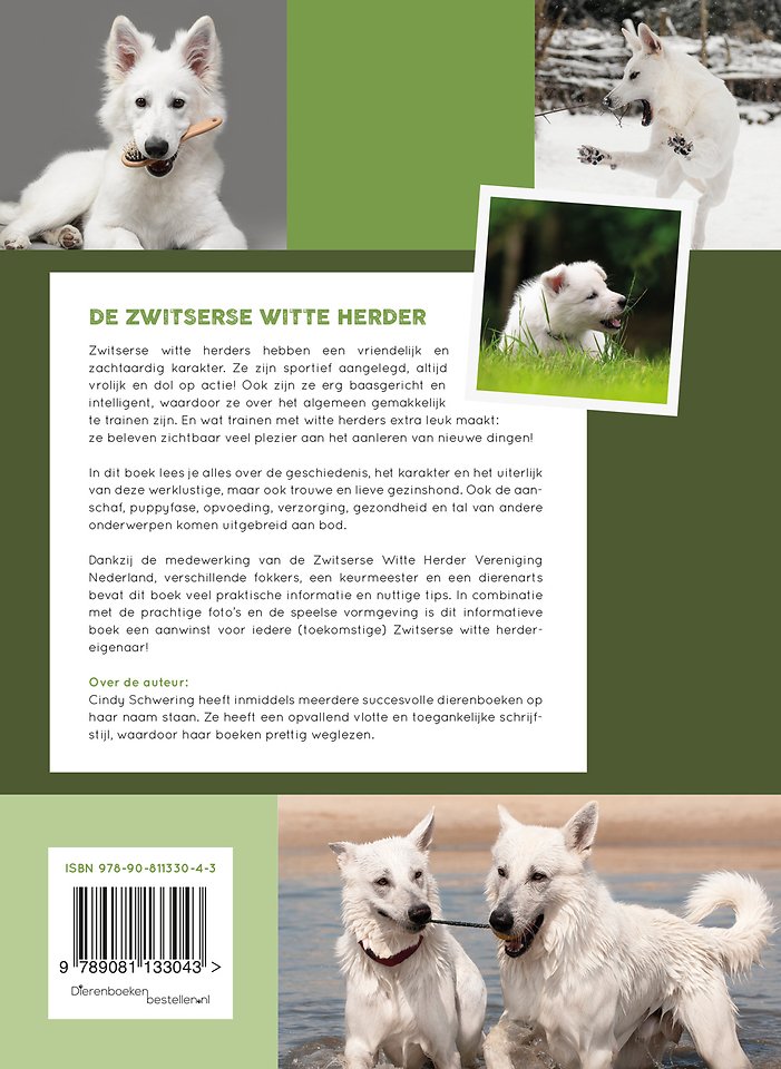 Dankzij de medewerking van de Zwitserse Witte Herder Vereniging Nederland, verschillende fokkers, een keurmeester en een dierenarts bevat dit boek veel praktische informatie en nuttige tips. De vlotte schrijfstijl van Cindy Schwering zorgt ervoor dat het boek prettig wegleest. In combinatie met de talrijke mooie foto’s en de aantrekkelijke vormgeving is dit informatieve boek een aanwinst voor iedere (toekomstige) witte herder-eigenaar!