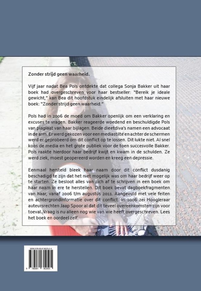 Vijf jaar nadat Bea Pols ontdekte dat collega Sonja Bakker uit haar boek had overgeschreven voor haar bestseller: “Bereik je ideale gewicht,” kan Bea dit hoofdstuk eindelijk afsluiten met haar nieuwe boek: “Zonder strijd geen waarheid.”