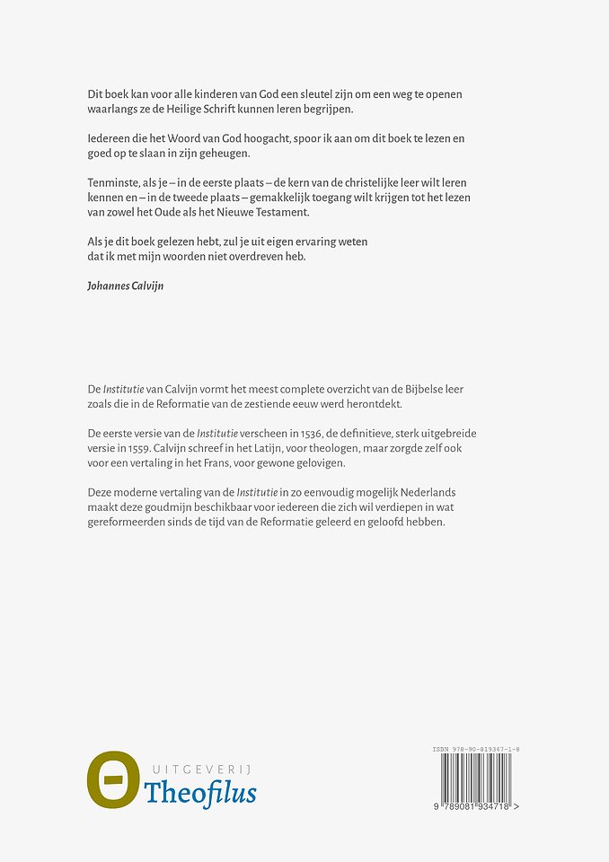 Deze moderne vertaling van de Institutie in zo eenvoudig mogelijk Nederlands maakt deze goudmijn beschikbaar voor iedereen die zich wil verdiepen in wat gereformeerden sinds de tijd van de Reformatie geleerd en geloofd hebben.