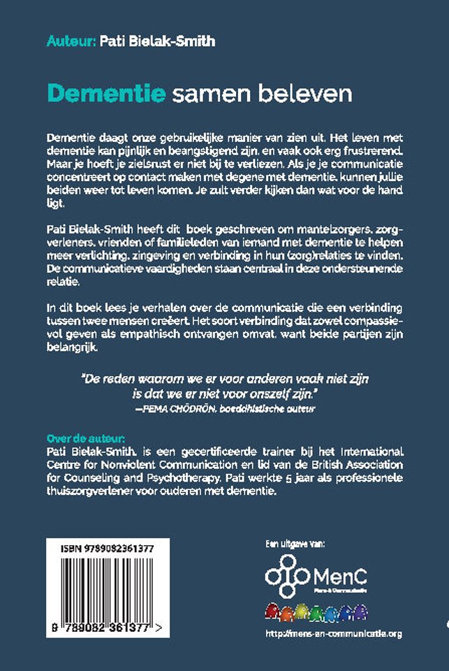 Het boek laat zien hoe mantelzorgers en zorgverleners, vrienden of familieleden van iemand met dementie meer verlichting, zingeving en verbinding in hun (zorg)relatie kunnen ervaren – door het toepassen van Geweldloze Communicatie.