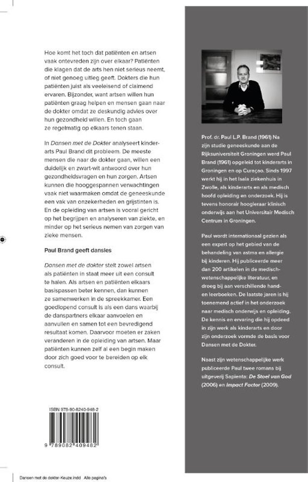 In Dansen met de Dokter analyseert kinderarts Paul Brand dit probleem. De meeste mensen die naar de dokter gaan, willen een duidelijk en zwart-wit antwoord over hun gezondheidsvragen en hun zorgen. Artsen kunnen die hooggespannen verwachtingen vaak niet waarmaken omdat de geneeskunde een vak van onzekerheden en grijstinten is. En de opleiding van artsen is vooral gericht op het begrijpen en analyseren van ziekte, en minder op het serieus nemen van zorgen van zieke mensen.