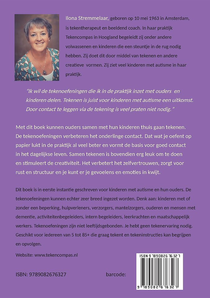 Ilona Stremmelaar, is tekentherapeut en beeldend coach. In haar praktijk Tekencompas begeleidt zij onder andere volwassenen en kinderen die een steuntje in de rug nodig hebben. Zij doet dit door middel van tekenen en andere creatieve vormen. Zij ziet veel kinderen met autisme in haar praktijk.
