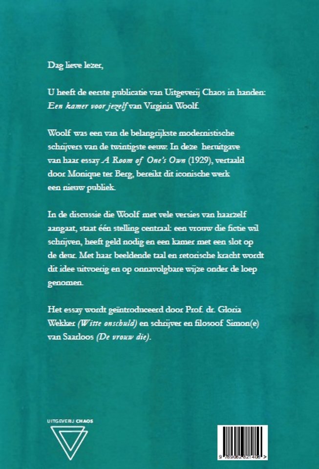 Woolf was een van de belangrijkste modernistische schrijvers van de twintigste eeuw. In deze heruitgavevan haar essay A Room of One's Own (1929), vertaald door Monique ter Berg, bereikt dit iconische werk