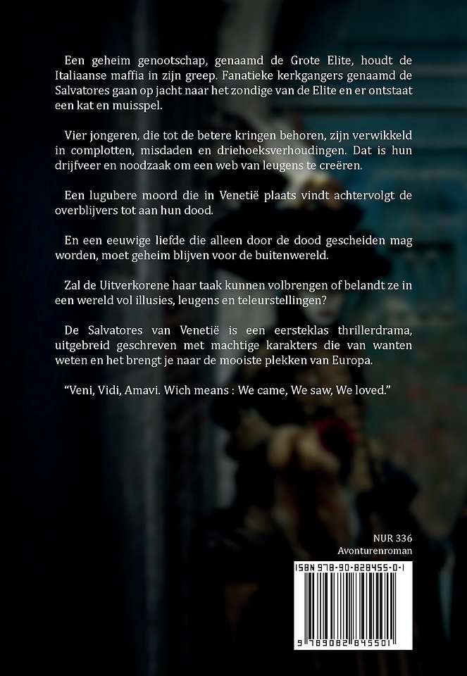 "Ik ga niet liegen dame, maar Lorena is vannacht vermoord en van Bas ontbreekt elk spoor! Wat is hier gebeurd?" En hij gooide foto's en een krant op mijn schoot met lugubere taferelen in beeld. Lorena was besmeurd met bloed. De kop van de krant luidde: "Negentienjarig meisje bruut vermoord in Venetië, haar baby is uit haar buik gesneden, ze was dertig weken in verwachting."