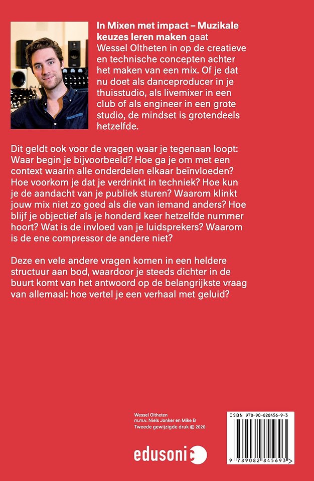 In Mixen met impact - muzikale keuzes leren maken gaat Wessel Oltheten in op de creatieve en technische concepten achter het maken van een mix. Of je dat nu doet als dance-producer in je thuisstudio, als live-mixer in een club of als engineer in een grote studio, de mindset is grotendeels hetzelfde - en ook de vragen waar je tegenaan loopt. Waar begin je? Hoe ga je om met een context waarin alle onderdelen elkaar beïnvloeden? Hoe voorkom je dat je verdrinkt in techniek? Hoe kun je de aandacht van je publiek sturen? Waarom klinkt mijn mix niet zo goed als die van iemand anders? Hoe blijf je objectief als je honderd keer hetzelfde nummer hoort? Wat is de invloed van je luidsprekers? Waarom is de ene compressor de andere niet? Deze en vele andere vragen komen in een heldere structuur aan bod, waardoor de lezer steeds dichter in de buurt komt van het antwoord op de belangrijkste vraag van allemaal: hoe vertel je een verhaal met geluid?