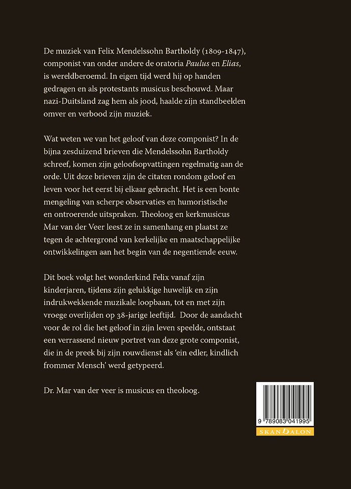 Wat weten we van het geloof van deze componist? In de bijna zesduizend brieven die Mendelssohn Bartholdy schreef, komen zijn geloofsopvattingen regelmatig aan de orde. Uit deze brieven zijn de citaten rondom geloof en leven voor het eerst bij elkaar gebracht. Het is een bonte mengeling van scherpe observaties en humoristische en ontroerende uitspraken. Theoloog en kerkmusicus Mar van der Veer leest ze in samenhang en plaatst ze tegen de achtergrond van kerkelijke en maatschappelijke ontwikkelingen aan het begin van de negentiende eeuw.