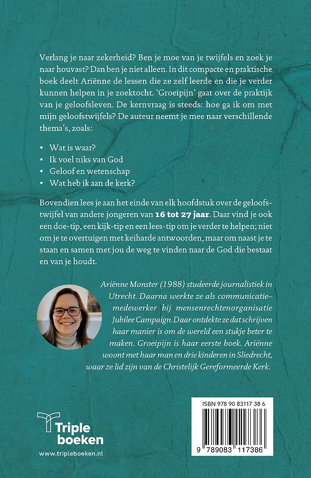 Verlang je naar zekerheid? Ben je moe van je twijfels en zoek je naar houvast? Dan ben je niet alleen. In dit compacte en praktische boek deelt Ariënne de lessen die ze zelf leerde en die je verder kunnen helpen in je zoektocht. ‘Groeipijn’ gaat over de praktijk van je geloofsleven. De kernvraag is steeds: hoe ga ik om met mijn geloofstwijfels? De auteur neemt je mee naar verschillende thema’s, zoals: