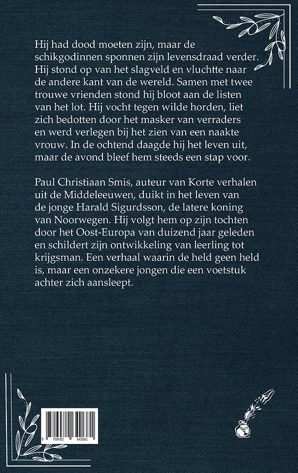 Paul Christiaan Smis, auteur van Korte verhalen uit de Middeleeuwen, duikt in het leven van de jonge Harald Sigurdsson, de latere koning van Noorwegen. Hij volgt hem op zijn tochten door het Oost-Europa van duizend jaar geleden en schildert zijn ontwikkeling van leerling tot krijgsman. Een verhaal waarin de held geen held is, maar een onzekere jongen die een voetstuk achter zich aansleept.
