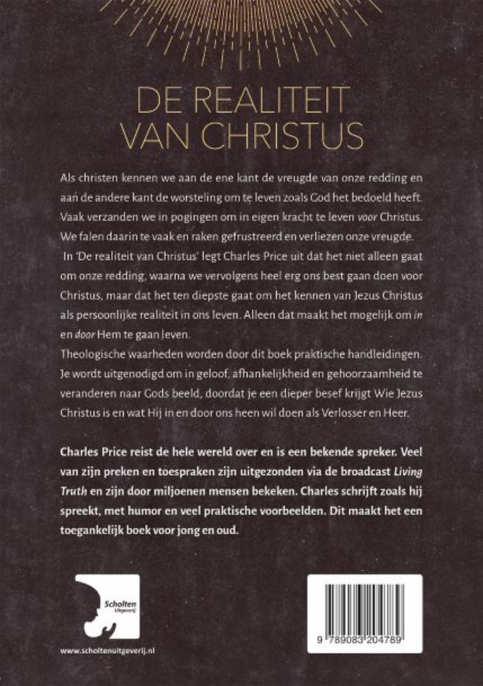 Als christen kennen we aan de ene kant de vreugde van onze redding en aan de andere kant de worsteling om te leven zoals God het bedoeld heeft. Vaak verzanden we in pogingen om in eigen kracht te leven voor Christus. We falen daarin te vaak en raken gefrustreerd en verliezen onze vreugde. In 'De realiteit van Christus' legt Charles Price uit dat het niet alleen gaat om onze redding, waarna we vervolgens heel erg ons best gaan doen voor Christus, maar dat het ten diepste gaat om het kennen van Jezus Christus als persoonlijke realiteit in ons leven. Alleen dat maakt het mogelijk om in en door Hem te gaan leven.