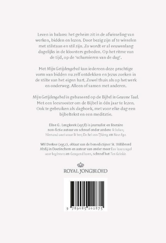Mijn Getijdengebed is gebaseerd op de Bijbel in Gewone Taal. Met een leesrooster om de Bijbel in één jaar te lezen. Ook te gebruiken als dagboek, met voor elke dag een bijbeltekst en een meditatie.