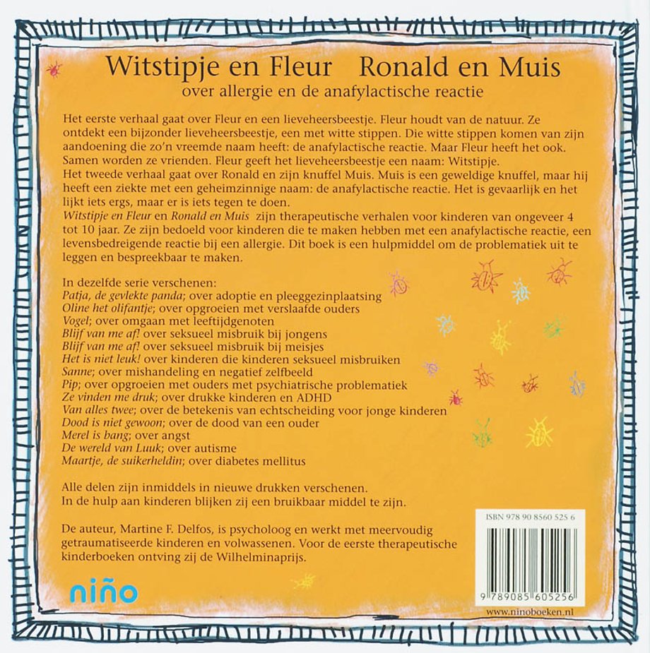 Met deze twee therapeutische verhalen maakt Martine Delfos duidelijk aan kinderen en volwassenen wat het betekent om te leven met de levensbedreigende anafylactische reactie. Kinderen en volwassenen met een anafylactische reactie dragen altijd een epi-pen bij zich waardoor ze zelf, of omstanders, onmiddellijk kunnen injecteren. Er is dan tijd om naar het ziekenhuis te gaan voor medische zorg.