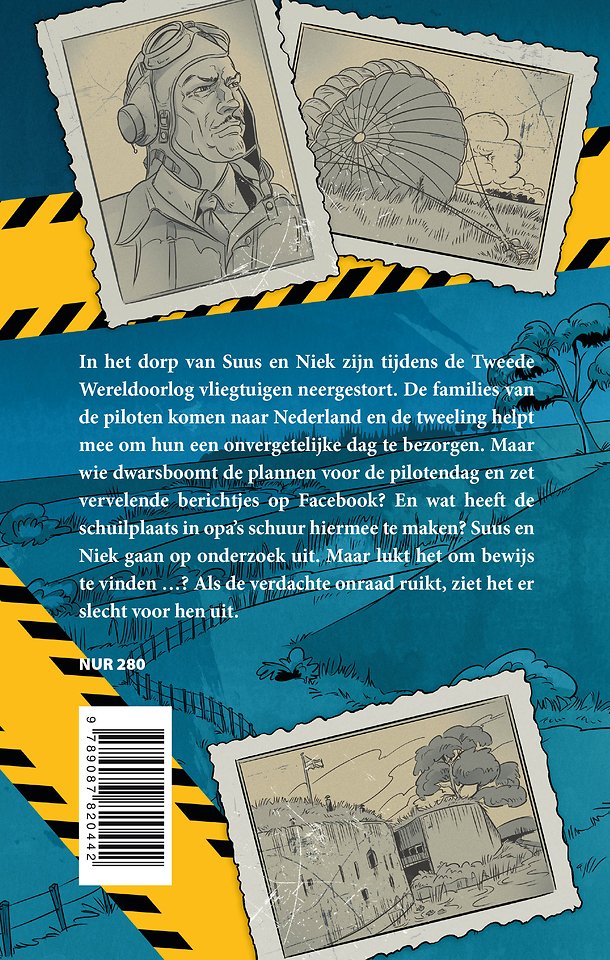 De families van de piloten komen naar Nederland en de tweeling helpt mee om hun een onvergetelijke dag te bezorgen. Maar wie dwarsboomt de plannen voor de pilotendag en zet vervelende berichtjes op Facebook? En wat heeft de schuilplaats in opa’s schuur hiermee te maken?