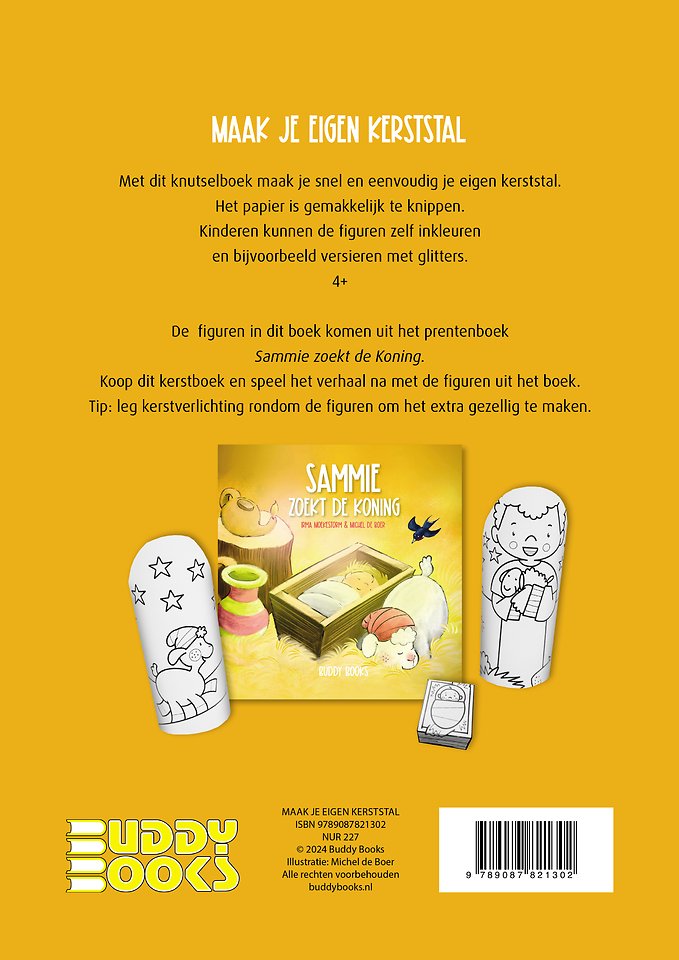 Koop ook dit kerstboek en speel het verhaal na met de figuren uit het knutselboek.