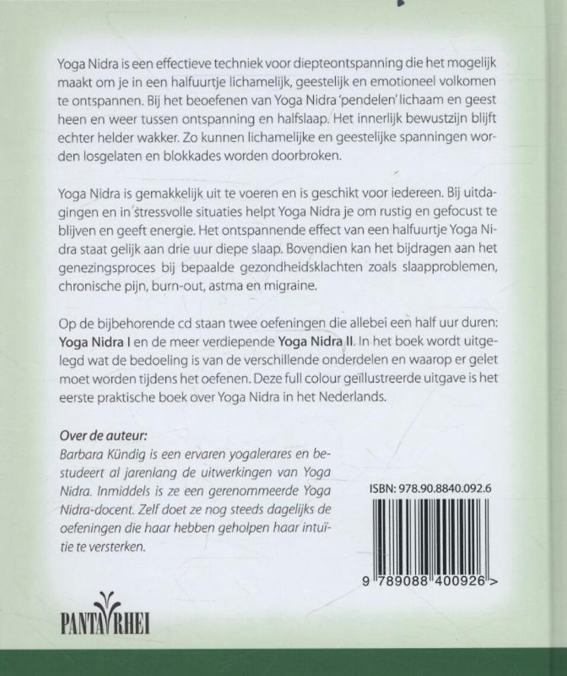 Deze full colour geïllustreerde uitgave is het eerste praktische boek over Yoga Nidra in het Nederlands. Op de bijbehorende cd staan twee oefeningen die allebei een half uur duren: Yoga Nidra I en de meer verdiepende Yoga Nidra II. In het boek wordt uitgelegd wat de bedoeling is van de verschillende onderdelen en waarop er gelet moet worden tijdens het oefenen.