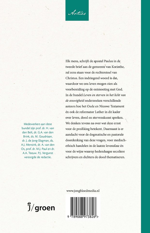 Iedereen zal eens voor de rechterstoel van Christus staan, zo zegt apostel Paulus in 2 Korinthe. Een indringend woord is dat, waardoor we ons leven mogen zien als voorbereiding op de ontmoeting met God. In de bundel Leven en sterven in het licht van de eeuwigheid gaan we na hoe het Oude en Nieuwe Testament maar ook reformator Maarten Luther in dit kader over leven, dood en stervenskunst spreken.
