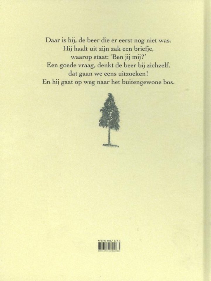 Daar is hij, de beer die er eerst nog niet was. Hij haalt uit zijn zak een briefje, waar- op staat: ‘Ben jij mij?’ Een goede vraag, denkt de beer bij zichzelf, dat gaan we eens uitzoeken! En hij gaat op weg naar het buitengewone bos.