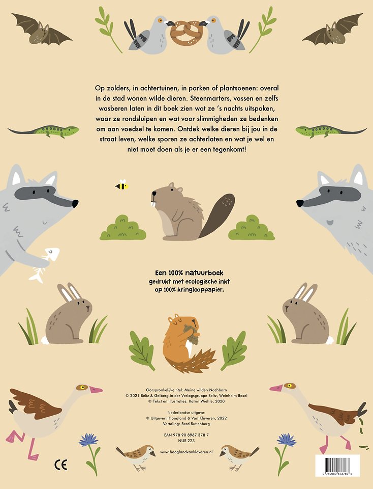 Op zolders, in achtertuinen, in parken of plantsoenen: overal in de stad wonen wilde dieren. Steenmarters, vossen en zelfs wasberen laten in dit boek zien wat ze ’s nachts uitspoken, waar ze rondsluipen en wat voor slimmigheden ze bedenken om aan voedsel te komen. Ontdek welke dieren bij jou in de straat leven, welke sporen ze achterlaten en wat je wel en niet moet doen als je er een tegenkomt!