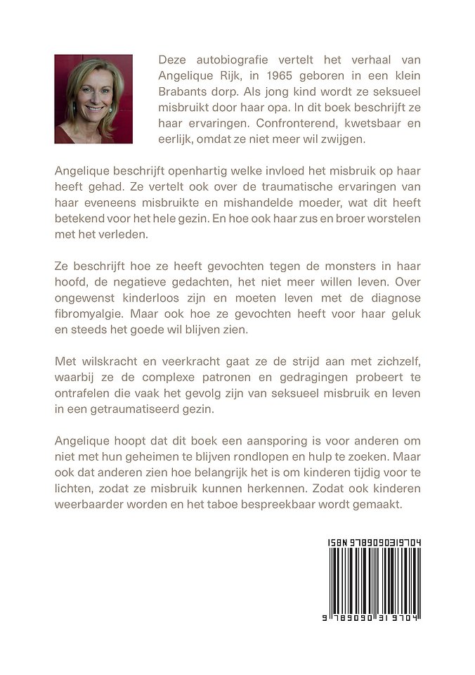 Deze autobiografie vertelt het verhaal van Angelique Rijk. Als jong kind wordt ze seksueel misbruikt door haar opa. Ze beschrijft haar ervaringen, confronterend, kwetsbaar en eerlijk, omdat ze niet meer wil zwijgen.