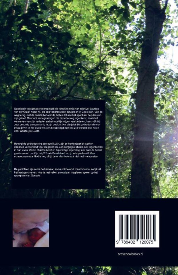 Speelplein van genade weerspiegelt de innerlijke strijd van schrijver Laurens van der Graaf, nadat hij, als een verloren zoon, terugkeert in Gods plan. Van de weg terug, met de daarbij behorende twijfels tot aan het openbaar belijden van zijn geloof. Maar ook de tegenslagen die hij onderweg tegenkomt, zoals het verwerken van zijn verleden en het moeilijk krijgen van kinderen, beschrijft hij zeer gevoelig en openhartig in zijn gedicht. Het zijn juist die gedichten die een inkijk geven in het leven van een beschadigd man die zijn wonden laat helen door Goddelijke Liefde.