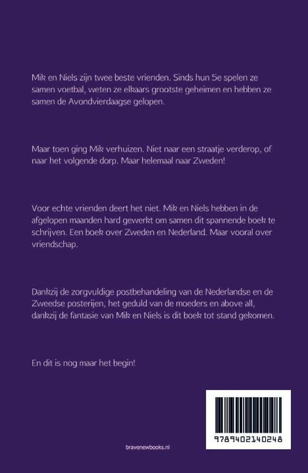Voor echte vrienden deert het niet. Mik en Niels hebben in de afgelopen maanden hard gewerkt om samen dit spannende boek te schrijven. Een boek over Zweden en Nederland. Maar vooral over vriendschap.