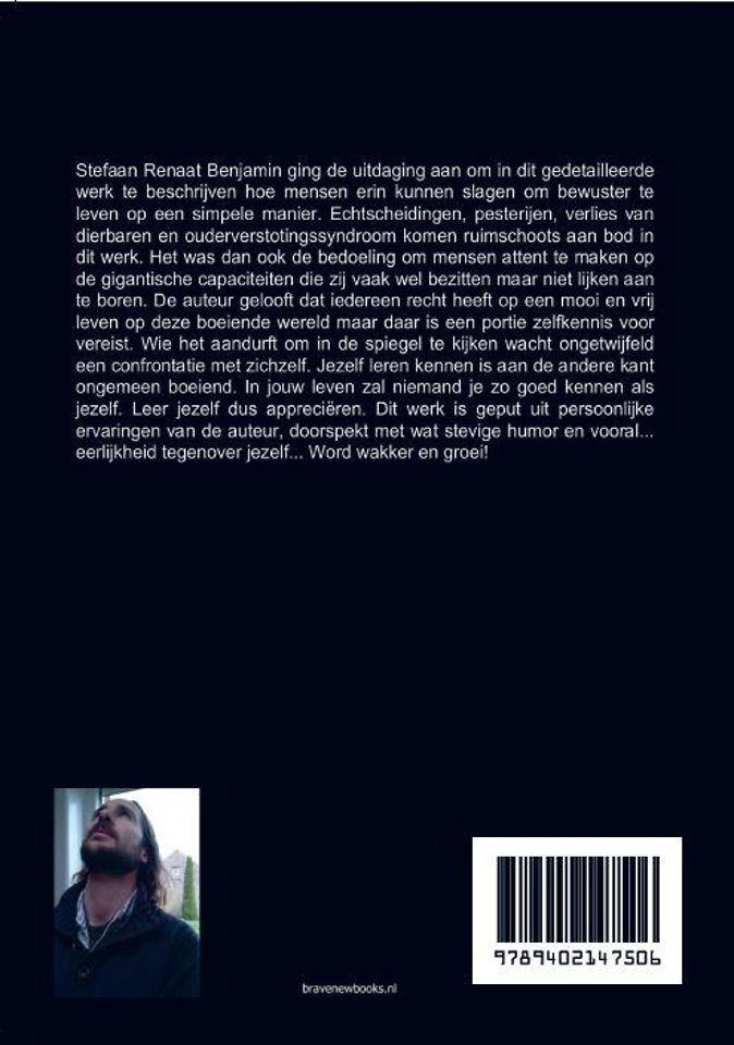 Stefaan Renaat Benjamin ging de uitdaging aan om in dit gedetailleerde werk te beschrijven hoe mensen erin kunnen slagen om bewuster te leven op een simpele manier. Echtscheidingen, pesterijen, verlies van dierbaren en ouderverstotingssyndroom komen ruimschoots aan bod in dit werk. Het was dan ook de bedoeling om mensen attent te maken op de gigantische capaciteiten die zij vaak wel bezitten maar niet lijken aan te boren. De auteur gelooft dat iedereen recht heeft op een mooi en vrij leven op deze boeiende wereld maar daar is een portie zelfkennis voor vereist. Wie het aandurft om in de spiegel te kijken wacht ongetwijfeld een confrontatie met zichzelf. Jezelf leren kennen is aan de andere kant ongemeen boeiend. In jouw leven zal niemand je zo goed kennen als jezelf. Leer jezelf dus appreciëren. Dit werk is geput uit persoonlijke ervaringen van de auteur, doorspekt met wat stevige humor en vooral... eerlijkheid tegenover jezelf... Word wakker en groei!