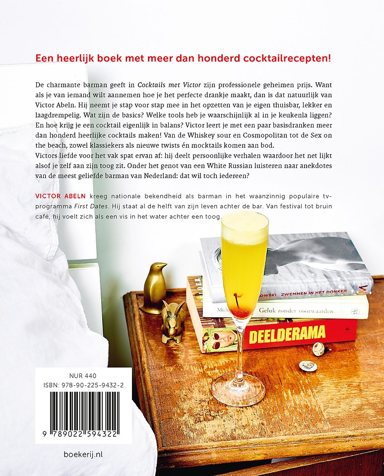 De charmante barman geeft in Cocktails met Victor zijn professionele geheimen prijs. Want als je van iemand wilt aannemen hoe je het perfecte drankje maakt, dan is dat natuurlijk van Victor Abeln. Hij neemt je stap voor stap mee in het opzetten van je eigen thuisbar, lekker en laagdrempelig. Wat zijn de basics? Welke tools heb je waarschijnlijk al in je keukenla liggen? En hoe krijg je een cocktail eigenlijk in balans? Victor leert je met een paar basisdranken meer dan honderd heerlijke cocktails maken! Van de Whiskey sour en Cosmopolitan tot de Sex on the beach, zowel klassiekers als nieuwe twists én mocktails komen aan bod.