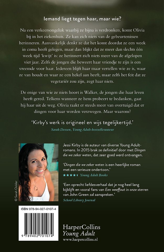 De enige van wie ze niets hoort is Walker, de jongen die haar leven heeft gered. Telkens wanneer ze hem probeert te bedanken, gaat hij haar uit de weg. Olivia raakt er steeds meer van overtuigd dat er dingen voor haar worden verzwegen. Maar waarom?