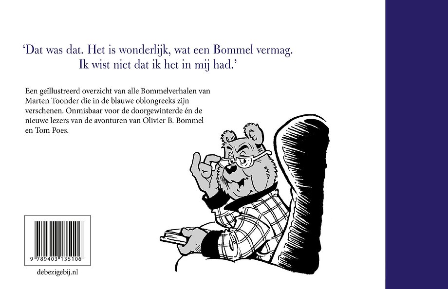 Een geïllustreerd overzicht van alle Bommelverhalen van Marten Toonder die in de blauwe oblongreeks zijn verschenen. Onmisbaar voor de doorgewinterde én de nieuwe lezers van de avonturen van Olivier B. Bommel en Tom Poes.