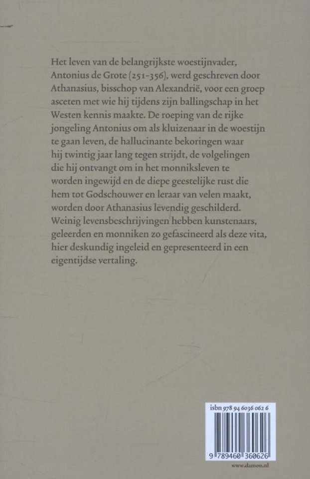 Het leven van de belangrijkste woestijnvader, Antonius de Grote (251-356), werd geschreven door Athansius, bisschop van Alexandrië, voor een groep asceten met wie hij tijdens zijn ballingschap in het Westen kennis maakte. De roeping van de rijke jongeling Antonius om als kluizenaar in de woestijn te gaan leven, de hallucinante bekoringen waar hij twintig jaar lang tegen strijdt, de volgelingen die hij ontvangt om in het monniksleven te worden ingewijd en de diepe geestelijke rust die hem tot Godschouwer en leraar van velen maakt, worden door Athanasius levendig geschilderd. Weinig levensbeschrijvingen hebben kunstenaars, geleerden en monniken zo gefascineerd als deze vita, hier deskundig ingeleid en gepresenteerd in een eigentijdse vertaling.