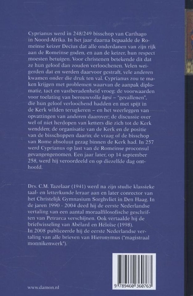 Drs. C.M. Tazelaar (1941) werd na zijn studie klassieke taal- en letterkunde leraar aan en later conrector van het Christelijk Gymnasium Sorghvliet in Den Haag. In de jaren 1990 - 2004 deed hij de eerste Nederlandse vertaling van een aantal moraalfilosofische geschriften van Petrarca verschijnen. Ook vertaalde hij de briefwisseling van Abélard en Héloïse (1998). In 2008 publiceerde hij de eerste Nederlandse vertaling van alle brieven van Hieronymus ("magistraal monnikenwerk").
