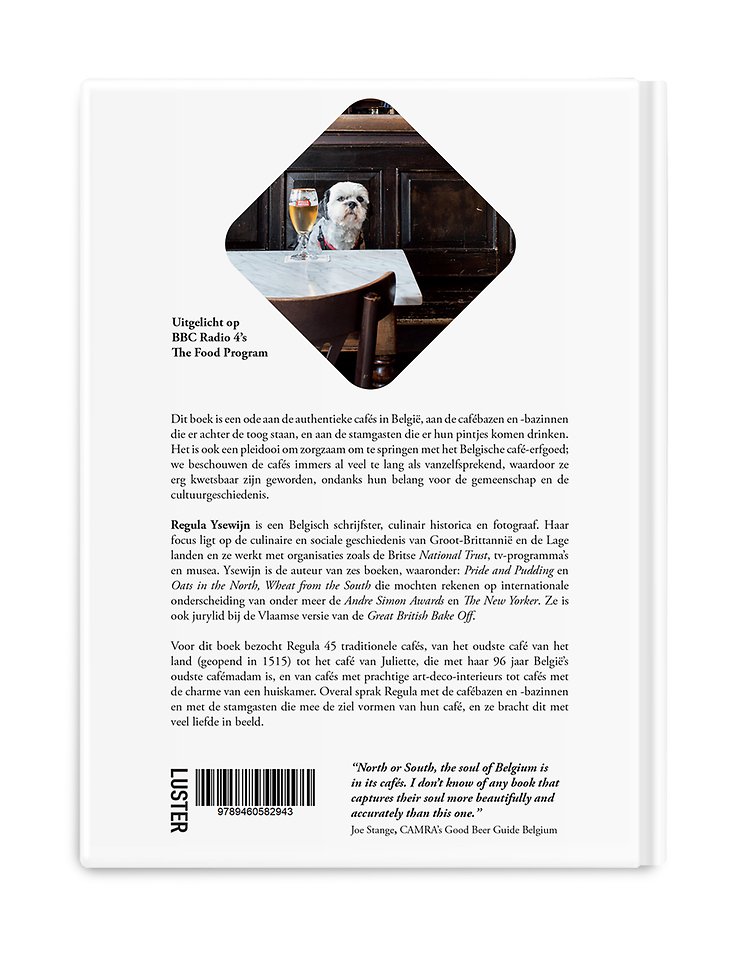 Voor dit boek bezocht Regula 45 traditionele cafés, van het oudste café van het land (geopend in 1515) tot het café van Juliette, die met haar 96 jaar België's oudste cafémadam is, en van cafés met prachtigste art-deco-interieurs 101 cafés met de charme van een huiskamer. Overal sprak Regula met de cafébazen en -bazinnen en met de stamgasten die mee de ziel vormen van hun café, en ze bracht dit met veel liefde in beeld.