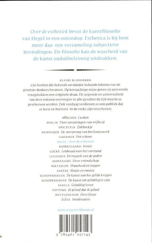 Over de esthetiek bevat de kunstfilosofie van Georg Wilhelm Friedrich Hegel (1770-1831) in een notendop. Esthetica is bij Hegel niet enkel een verzameling subjectieve bevindingen, maar iets waar op systematische wijze over kan worden nagedacht. Uiteindelijk is het de filosofie die de waarheid van de kunst ondubbelzinnig kan uitdrukken.