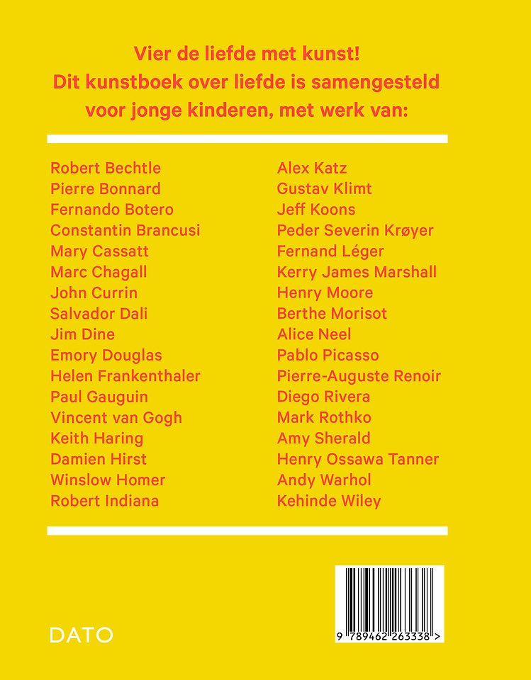 Voor dit boek zijn 34 kunstwerken van alle tijden geselecteerd waarin het thema liefde een rol speelt. De kunstwerken zijn voorzien van korte tekstjes en ondergebracht in groepen met de namen: ‘Liefde is…’ ‘Liefde voelt…’ ‘Liefde maakte je…’ ‘Liefde ziet eruit als…’ ‘Liefde is overal’ en ‘Liefde is mooi’.