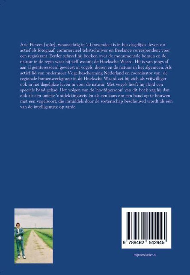 Arie Pieters (1962), woonachtig in 's-Gravendeel is in het dagelijkse leven o.a. actief als fotograaf, commercieel tekstschrijver en freelance correspondent voor een regiokrant. Eerder schreef hij boeken over de monumentale bomen en de natuur in de regio waar hij zelf woont; de Hoeksche Waard. Hij is van jongs af aan al geïnteresseerd geweest in vogels, dieren en de natuur in het algemeen. Als actief lid van ondermeer Vogelbescherming Nederland en coördinator van de regionale bomenwerkgroep in de Hoeksche Waard zet hij zich als vrijwilliger ook in het dagelijkse leven in voor de natuur. Met vogels heeft hij altijd een speciale band gehad. Het volgen van de 'hoofdpersoon' van dit boek zag hij dan ook als een unieke 'ontdekkingsreis' én als een kans om een band op te bouwen met een vogelsoort, die inmiddels door de wetenschap beschouwd wordt als één van de intelligentste op aarde.