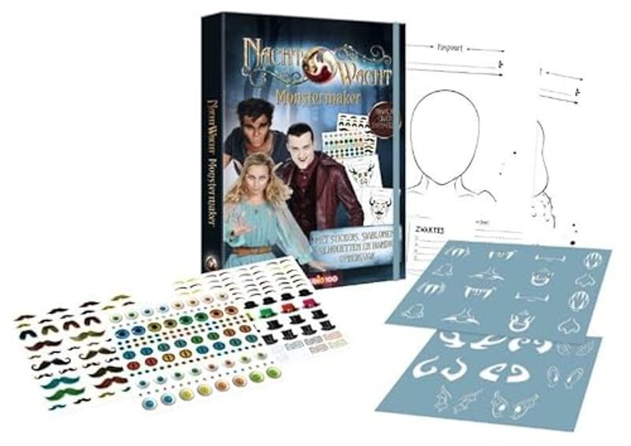 Creëer het monster uit je engste droom! Pimp de silhouetten van monsterkoppen en monsterlijven op het tekenblok: gebruik de sjablonen om oren, horens, monden met vieze tanden en neuzen te tekenen en maak je monsters af met stickers van ogen, snorren en wenkbrauwen. Geef je monster een naam en verzin er je eigen verhaal bij. Laat je fantasie de vrije loop! Bewaar je monsterlijke creaties in het opbergvak en word... de monstermaker van Schemermeer!