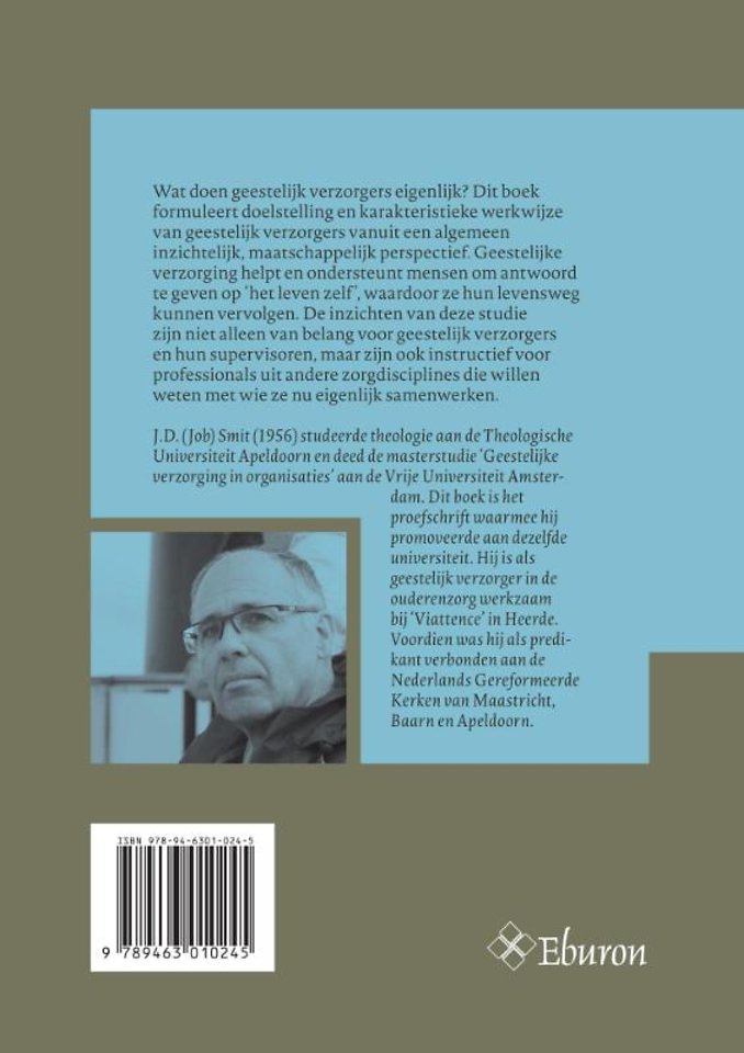 Wat doen geestelijk verzorgers eigenlijk? Dit boek formuleert doelstelling en karakteristieke werkwijze van geestelijk verzorgers vanuit een algemeen inzichtelijk, maatschappelijk perspectief. Geestelijke verzorging helpt en ondersteunt mensen om antwoord te geven op 'het leven zelf', waardoor ze hun levensweg kunnen vervolgen. De inzichten van deze studie zijn niet alleen van belang voor geestelijk verzorgers en hun supervisoren, maar zijn ook instructief voor professionals uit andere zorgdisciplines die willen weten met wie ze nu eigenlijk samenwerken.