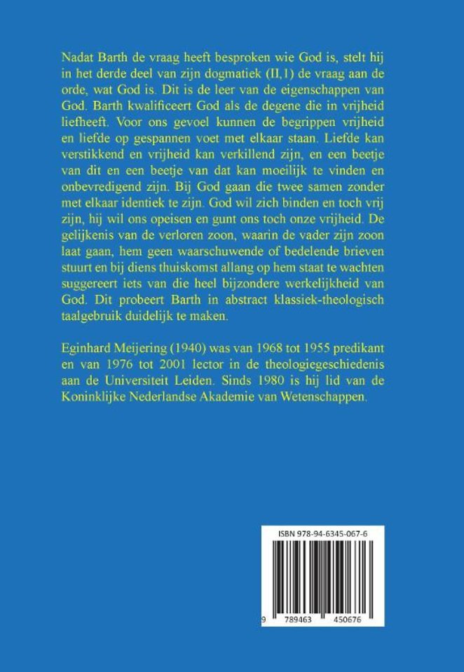 Nadat Barth de vraag heeft besproken wie God is, stelt hij in het derde deel van zijn dogmatiek (II,1) de vraag aan de orde, wat God is. Dit is de leer van de eigenschappen van God. Barth kwalificeert God als de degene die in vrijheid liefheeft. Voor ons gevoel kunnen de begrippen vrijheid en liefde op gespannen voet met elkaar staan. Liefde kan verstikkend en vrijheid kan verkillend zijn, en een beetje van dit en een beetje van dat kan moeilijk te vinden en onbevredigend zijn. Bij God gaan die twee samen zonder met elkaar identiek te zijn. God wil zich binden en toch vrij zijn, hij wil ons opeisen en gunt ons toch onze vrijheid. De gelijkenis van de verloren zoon, waarin de vader zijn zoon laat gaan, hem geen waarschuwende of bedelende brieven stuurt en bij diens thuiskomst allang op hem staat te wachten suggereert iets van die heel bijzondere werkelijkheid van God. Dit probeert Barth in abstract klassiek-theologisch taalgebruik duidelijk te maken.