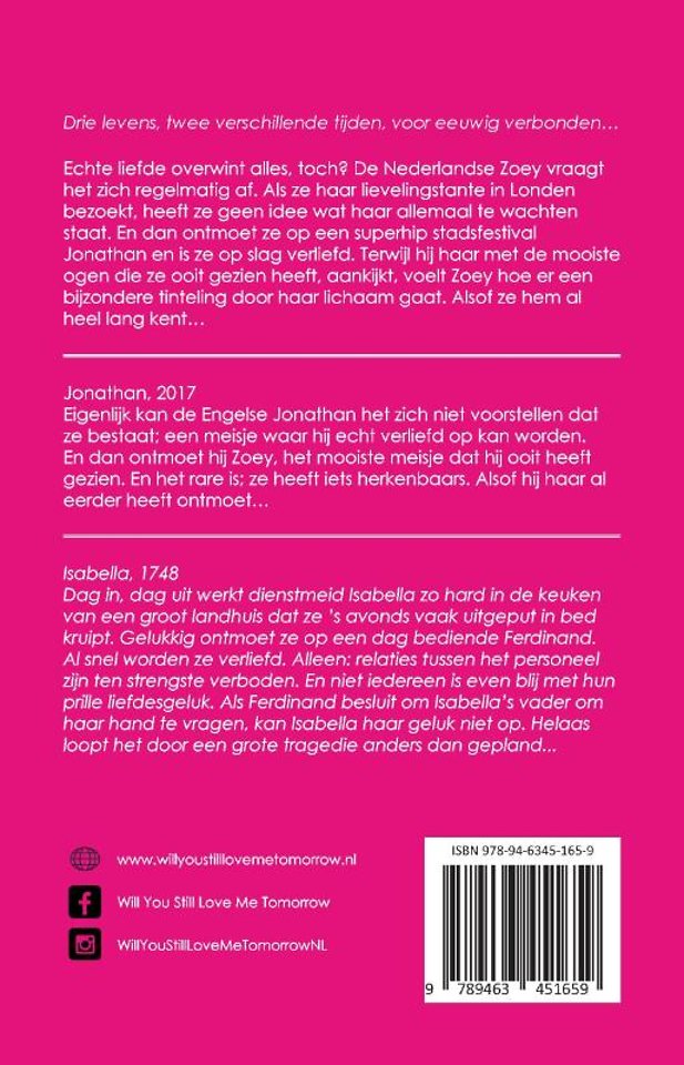 Echte liefde overwint alles, toch? De Nederlandse Zoey vraagt het zich regelmatig af. Als ze haar lievelingstante in Londen bezoekt, heeft ze geen idee wat haar allemaal te wachten staat. En dan ontmoet ze op een superhip stadsfestival Jonathan en ze is op slag verliefd. Terwijl hij haar met de mooiste ogen die ze ooit gezien heeft, aankijkt, voelt Zoey hoe er een bijzondere tinteling door haar lichaam gaat. Alsof ze hem al heel lang kent...
