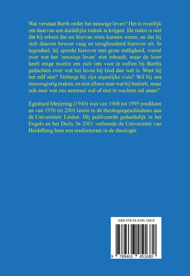 Wat verstaat Barth onder het eeuwige leven? Het is moeilijk om daarvan een duidelijke indruk te krijgen. De reden is niet dat hij erkent dat we hiervan niets kunnen weten, en dat hij zich daarom bewust vaag en terughoudend hierover uit. In tegendeel, hij spreekt hierover met grote stelligheid, vooral over wat het 'eeuwige leven' niet inhoudt, maar de lezer heeft enige moeite om zich iets voor te stellen bij Barths gedachten over wat het leven bij God dan wel is. Weet hij het zelf niet? Verbergt hij zijn eigenlijke visie? Wil hij ons nieuwsgierig maken, en niet alleen naar wat hij bedoelt, maar ook naar wat ons eenmaal wel of niet te wachten zal staan?