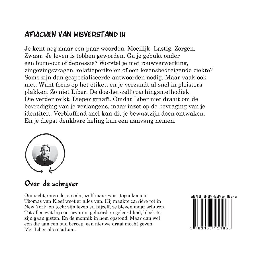 Je kent nog maar een paar woorden. Moeilijk. Lastig. Zorgen. Zwaar. Je leven lijkt tobben geworden. Ga je gebukt onder een burn-out of depressie? Worstel je met rouwverwerking, zingevingsvragen, relatieperikelen of een levensbedreigende ziekte? Soms zijn dan gespecialiseerde antwoorden nodig. Maar vaak ook niet. Want focus op het etiket, en je verzandt al snel in pleisters plakken. Zo niet Liber. De doe-het-zelf coachingsmethodiek. Die verder reikt. Dieper graaft. Want Liber draait niet om de bevrediging van je verlangens, maar zet in op de bevraging van je identiteit. Verbluffend snel kan dit je bewustzijn doen ontwaken. En je diepst denkbare heling kan een aanvang nemen.