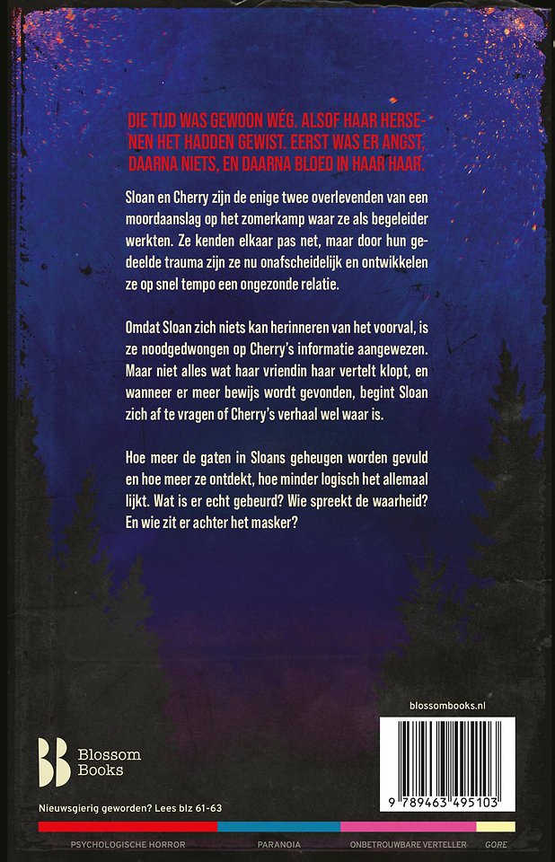 Die tijd was gewoon wég. Alsof haar hersenen het hadden gewist. Eerst was er angst, daarna niets, en daarna bloed in haar haar.