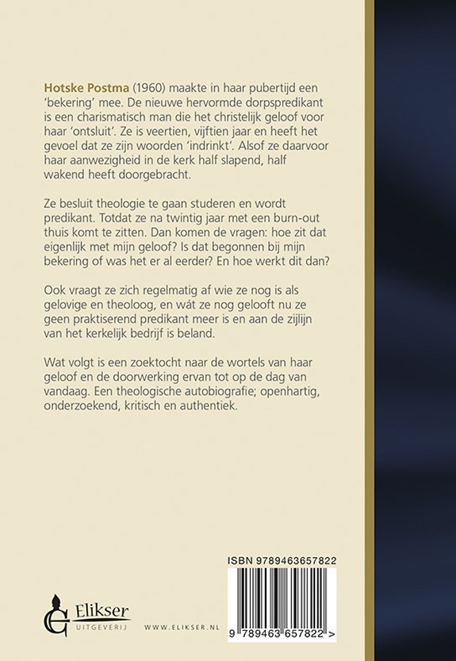 Ze besluit theologie te gaan studeren en wordt predikant. Totdat ze na twintig jaar met een burn-out thuis komt te zitten. Dan komen de vragen: hoe zit dat eigenlijk met mijn geloof? Is dat begonnen bij mijn bekering of was het er al eerder? En hoe werkt dit dan?