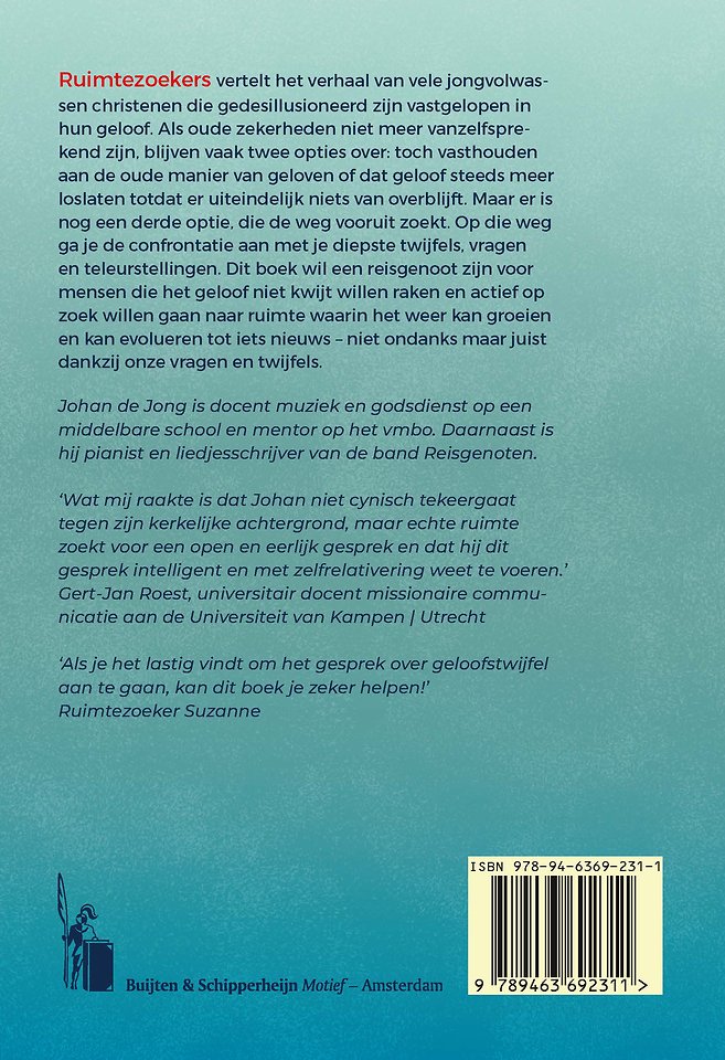 ‘Wat mij raakte is dat Johan niet cynisch tekeergaat tegen zijn kerkelijke achtergrond, maar echte ruimte zoekt voor een open en eerlijk gesprek en dat hij dit gesprek intelligent en met zelfrelativering weet te voeren.’ Gert-Jan Roest, universitair docent missionaire communicatie aan de Universiteit van Kampen | Utrecht