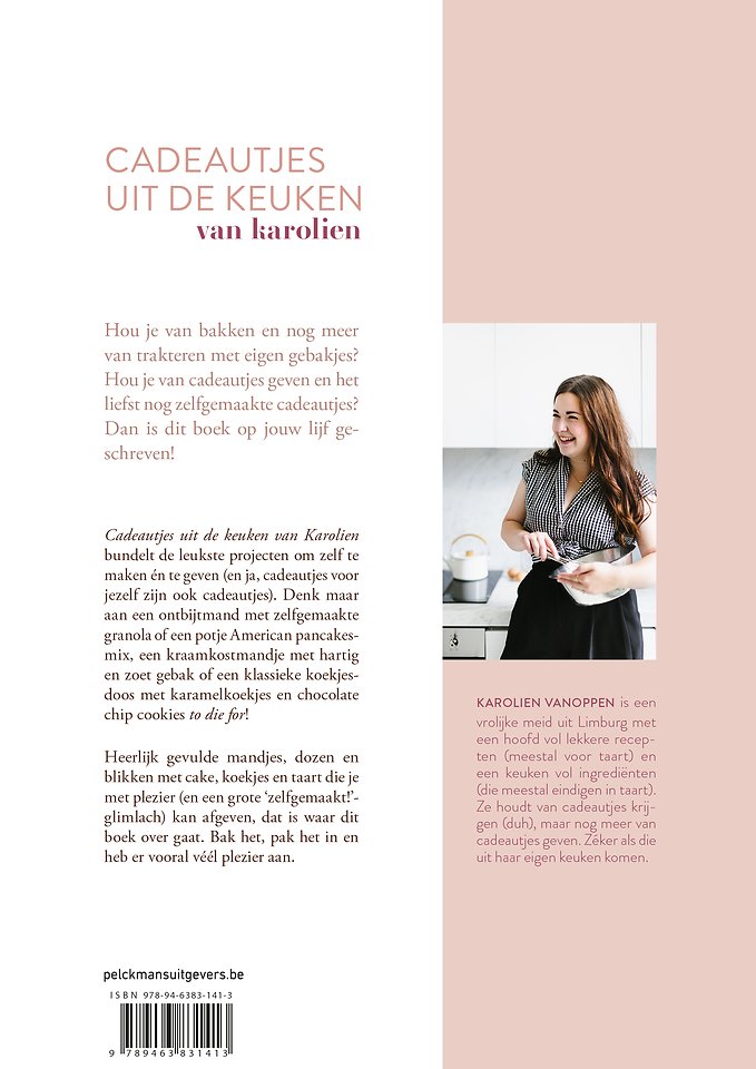 Karolien Vanoppen is een vrolijke meid uit Limburg met een hoofd vol lekkere recepten (meestal voor taart) en een keuken vol ingrediënten (die meestal eindigen in taart). Ze houdt van cadeautjes krijgen (duh), maar nog meer van cadeautjes geven. Zéker als die uit eigen keuken komen.