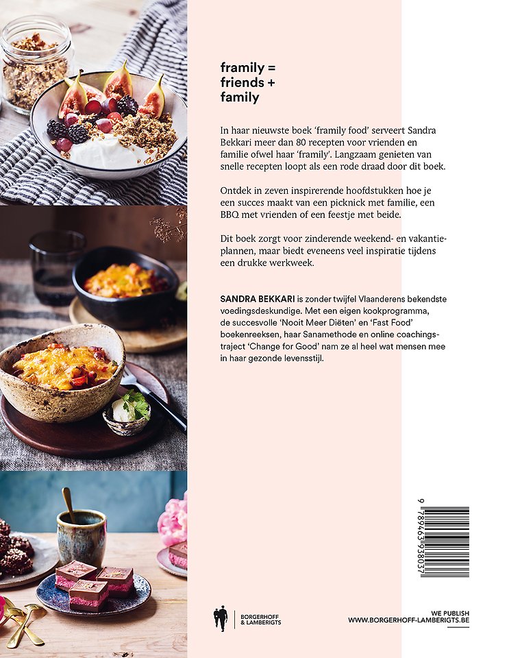Na de succesvolle Nooit Meer Diëten- en Fast Food-reeksen komt bestsellerauteur en Vlaanderens bekendste voedingsdeskundige Sandra Bekkari met een nieuw concept: Framily Food.