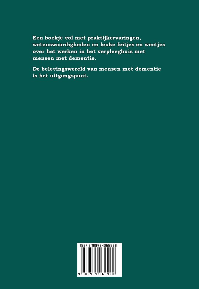 Een boekje met praktijkervaringen, wetenswaardigheden en leuke feitjes en weetjes over het ziektebeeld dementie in het verpleeghuis.