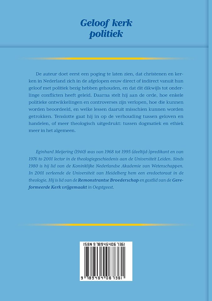De auteur doet eerst een poging te laten zien, dat christenen en kerken in Nederland zich in de afgelopen eeuw direct of indirect vanuit hun geloof met politiek bezig hebben gehouden, en dat dit dikwijls tot onderlinge conflicten heeft geleid. Daarna stelt hij aan de orde, hoe enkele politieke ontwikkelingen en controverses zijn verlopen, hoe die kunnen worden beoordeeld, en welke lessen daaruit misschien kunnen worden getrokken. Tenslotte gaat hij in op de verhouding tussen geloven en handelen, of meer theologisch uitgedrukt: tussen dogmatiek en ethiek meer in het algemeen.