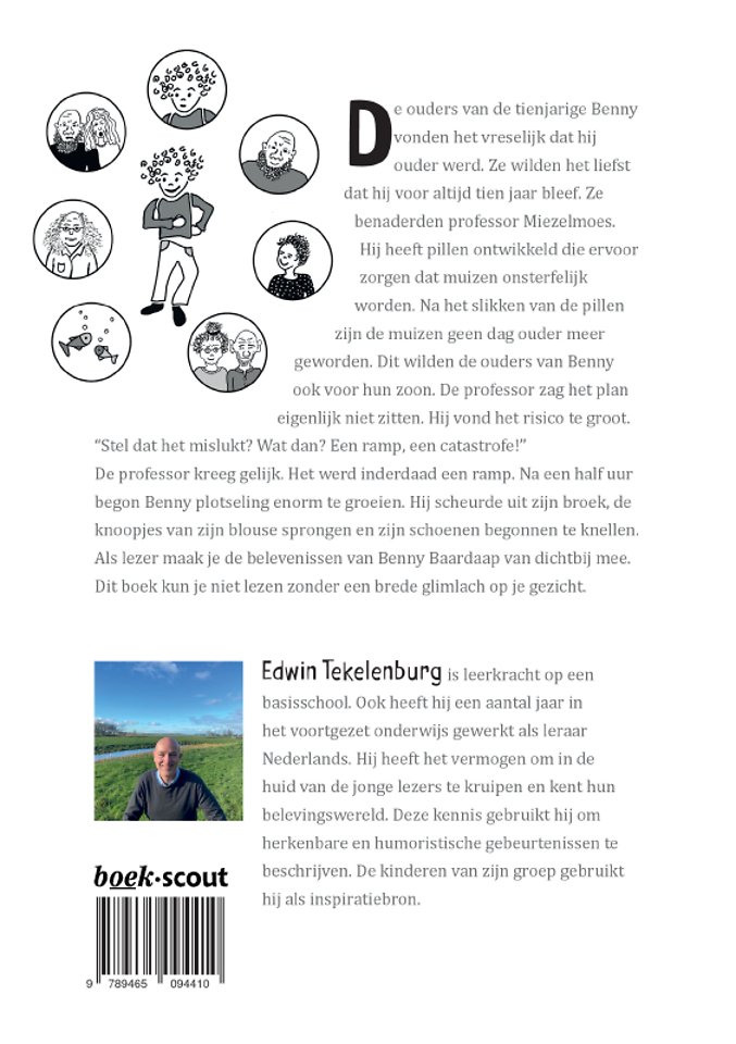 De professor kreeg gelijk. Het werd inderdaad een ramp. Na een half uur begon Benny plotseling enorm te groeien. Hij scheurde uit zijn broek, de knoopjes van zijn blouse sprongen en zijn schoenen begonnen te knellen. Als lezer maak je de belevenissen van Benny Baardaap van dichtbij mee. Dit boek kun je niet lezen zonder een brede glimlach op je gezicht.