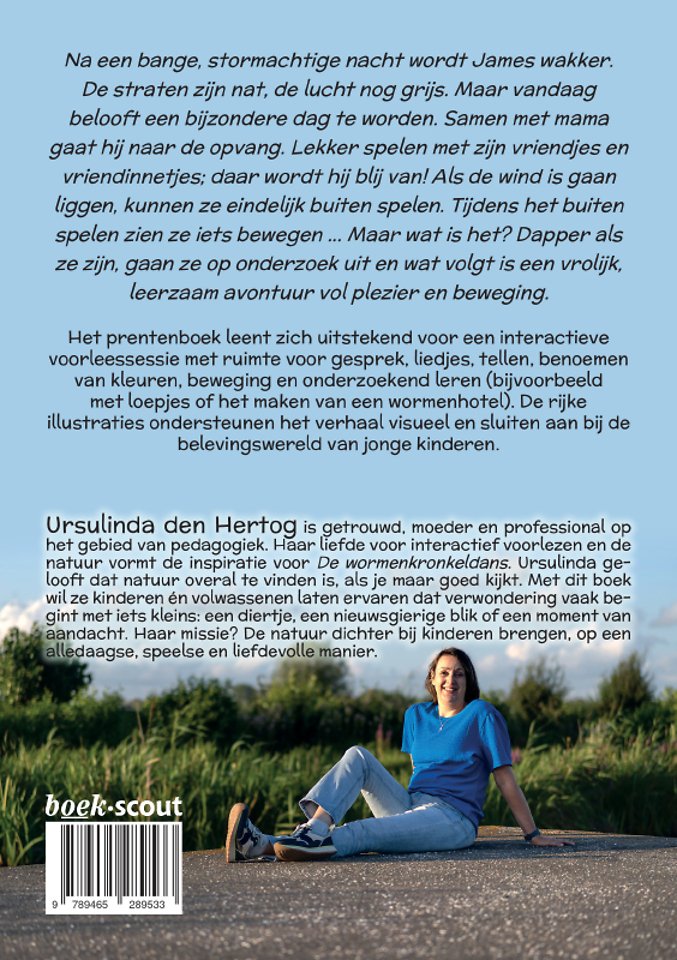 Na een bange, stormachtige nacht wordt James wakker. De straten zijn nat, de lucht nog grijs. Maar vandaag belooft een bijzondere dag te worden. Samen met mama gaat hij naar de opvang. Lekker spelen met zijn vriendjes en vriendinnetjes; daar wordt hij blij van! Als de wind is gaan liggen, kunnen ze eindelijk buiten spelen. Tijdens het buiten spelen zien ze iets bewegen … Maar wat is het? Dapper als ze zijn, gaan ze op onderzoek uit en wat volgt is een vrolijk, leerzaam avontuur vol plezier en beweging.